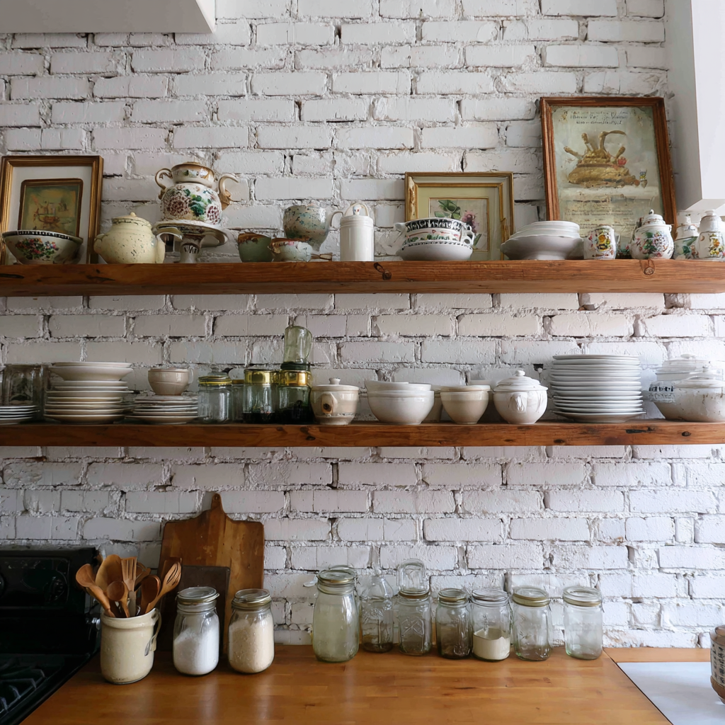 6. Open Shelving That Showcases Farmhouse Collections