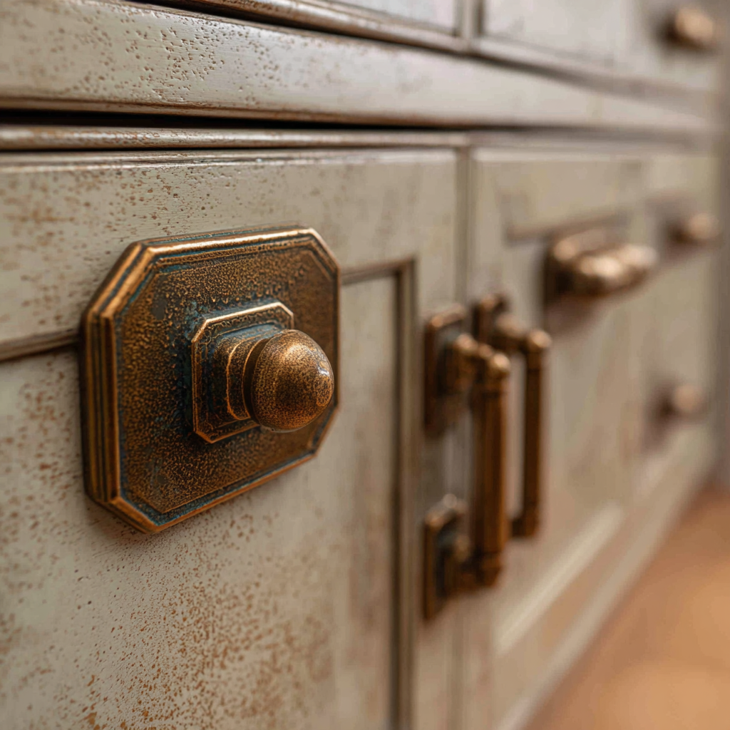 Aged brass hardware offers timeless appeal with rich, warm tones that develop beautiful patinas over time. Unlike bright brass that can appear too formal, aged finishes provide the weathered appearance that suggests generations of use. Oil-rubbed bronze provides similar warmth with darker tones that complement both light and dark cabinet finishes.