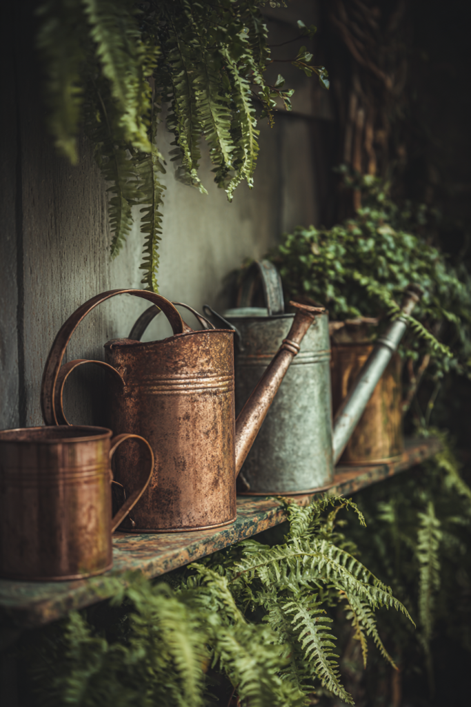 The aged metal complements plants perfectly. And when I actually need to water things? They’re right there, ready to go.