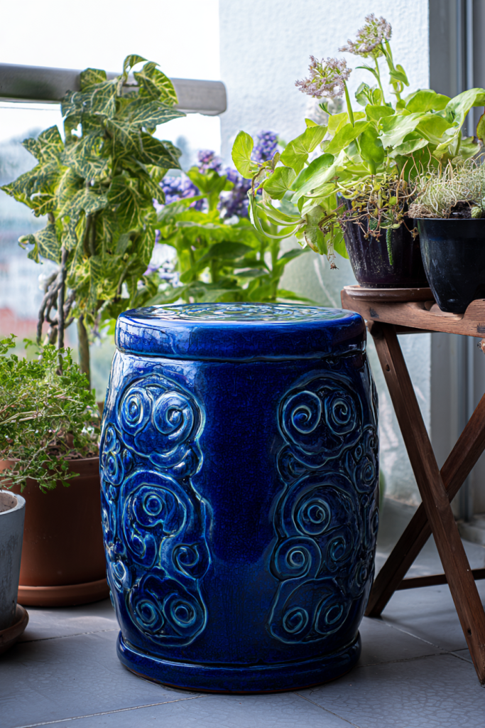 I went with cobalt blue in a traditional Chinese barrel shape. Bright colors like turquoise or coral would look stunning too.