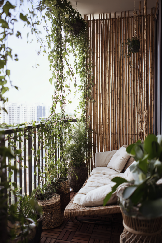 The bamboo develops this beautiful silver-gray patina as it weathers. And the vertical lines? They make small balconies feel taller. Win-win.