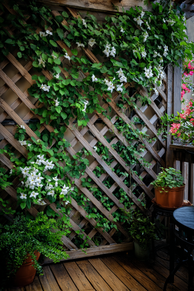 I installed a simple wooden trellis and trained jasmine up it. Took about four months before it really filled in, but now? Totally worth the wait.