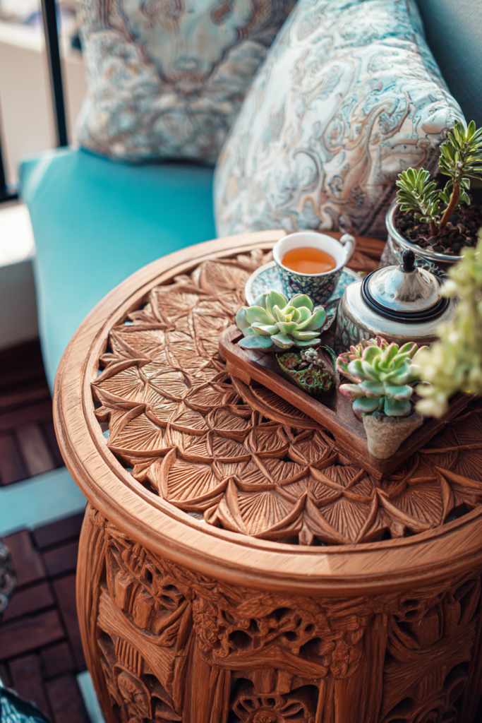I found a carved wood table at a street market. The traditional mandala pattern is insane. It’s functional art that gets used daily.