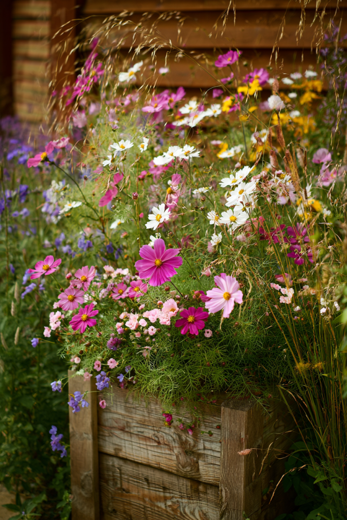 Plant native wildflower mixes. They bloom continuously with basically zero maintenance. The relaxed, untamed look is perfect for boho style.