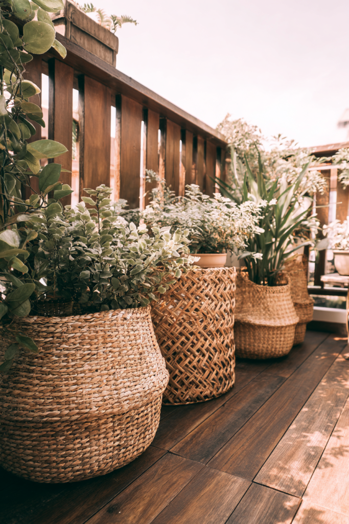That’s the secret to good boho design. Woven baskets add incredible warmth and visual interest to plant displays.