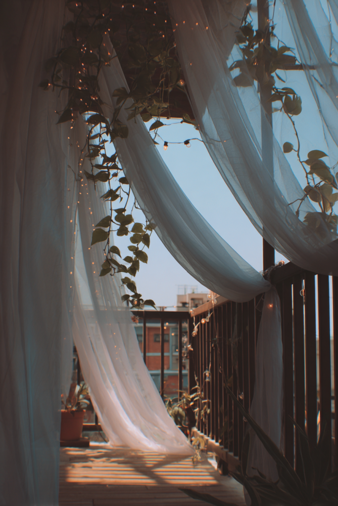 I hung lightweight cotton panels along my railing. When the breeze hits them? Magic. They dance and flow, creating privacy without blocking light.