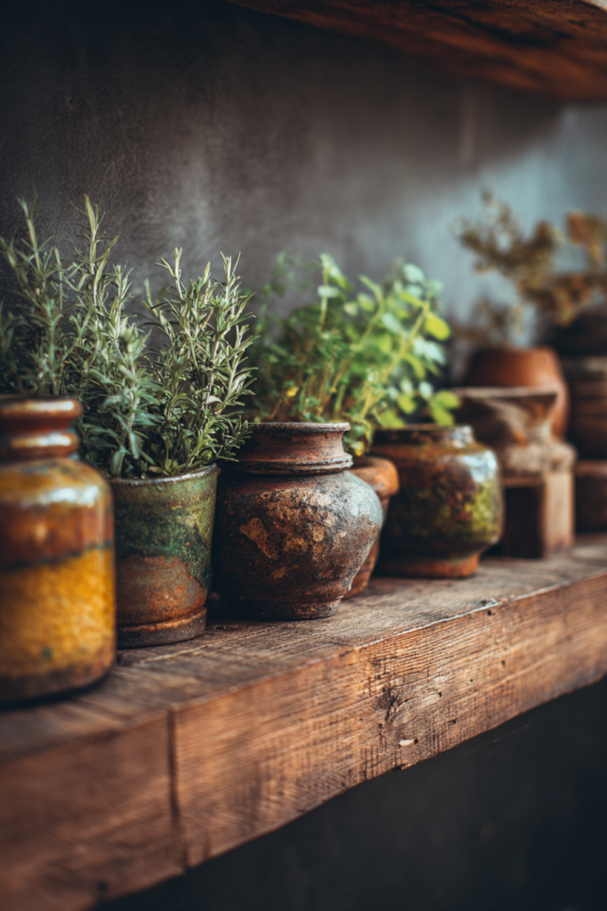 I stack some on wooden crates to create different heights. Over time, they develop this weathered patina that adds even more character.