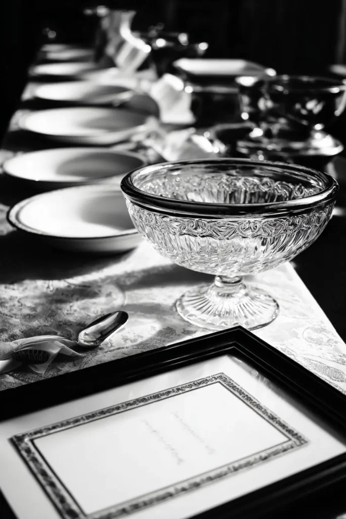 Material Suggestions: A vintage crystal bowl, a handwritten menu, a family heirloom platter.