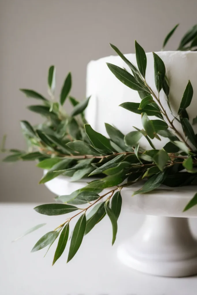 Material Suggestions: Fresh eucalyptus, long olive branches, trailing ivy.