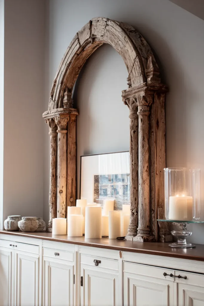 Flank it with two brass wall sconces for a dramatic evening look. It’s the kind of detail that makes guests stop and stare.