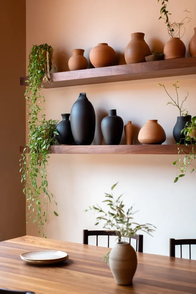 Floating shelves blur the line between display and storage. The look is curated. The function is real.