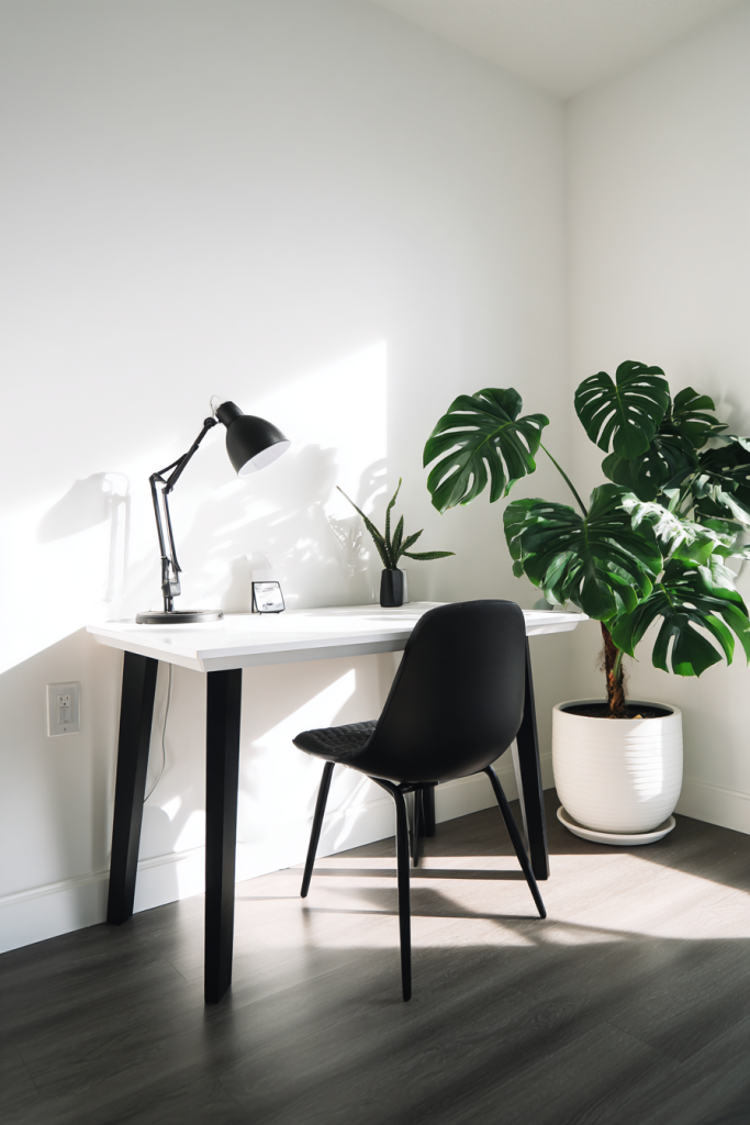 Stripping your workspace down to black, white, and gray creates mental clarity that colored chaos never could. Start with a simple white or black desk, add a matching chair, and limit desktop items to absolute essentials. Your laptop, one notebook, and a quality pen earn their spots.