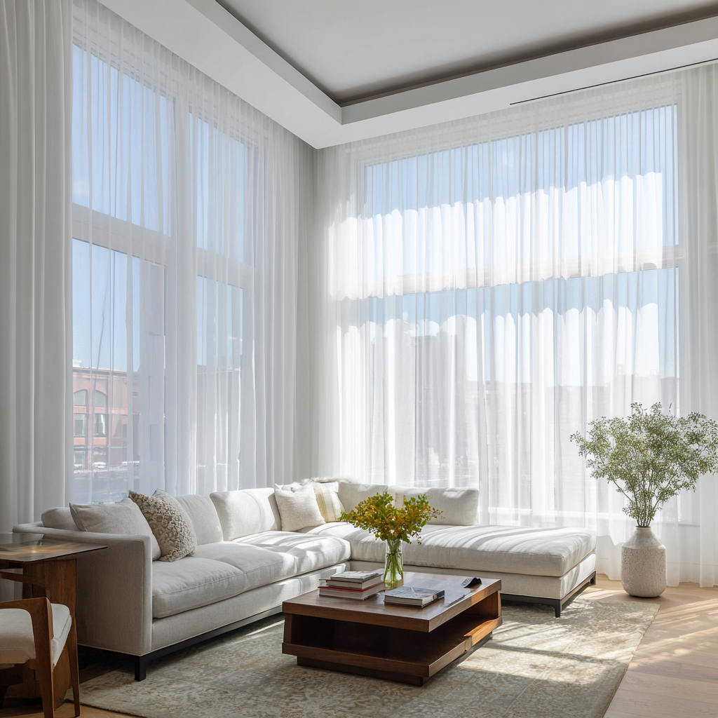 Go for floor-length curtains in light, flowing fabrics. I’m obsessed with sheer white or cream curtains. They diffuse natural light beautifully.