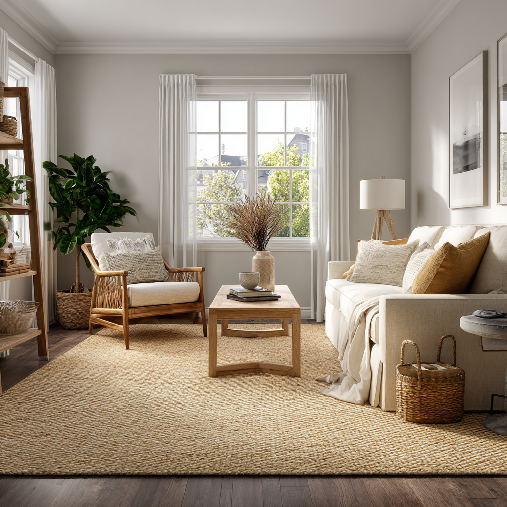 Light-colored rugs with subtle patterns work beautifully in small spaces. I’m a huge fan of jute or sisal. Natural texture without visual weight.