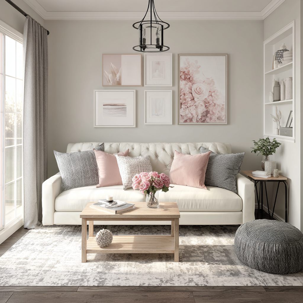 I chose whites, soft grays, and blush pink accents for my room. This cohesiveness prevents that choppy, cluttered look that makes rooms shrink.