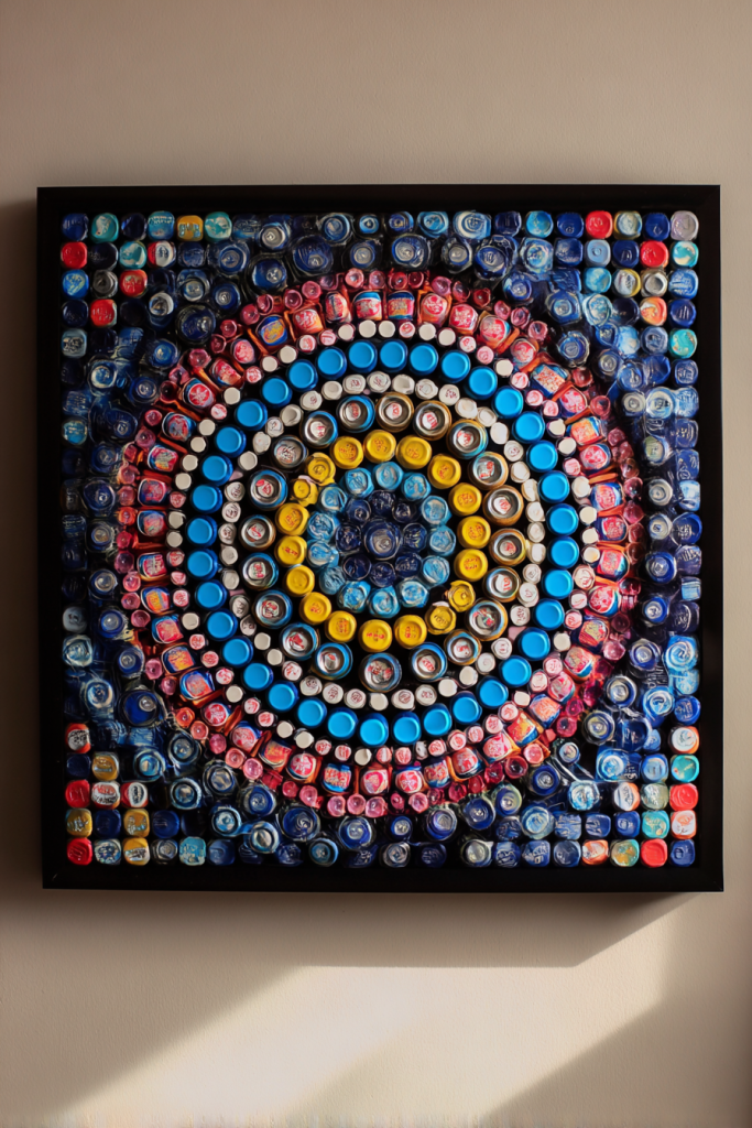 Arranged them in a circular mandala pattern. Glued them to a canvas. The dimensional quality creates shadows that change throughout the day.