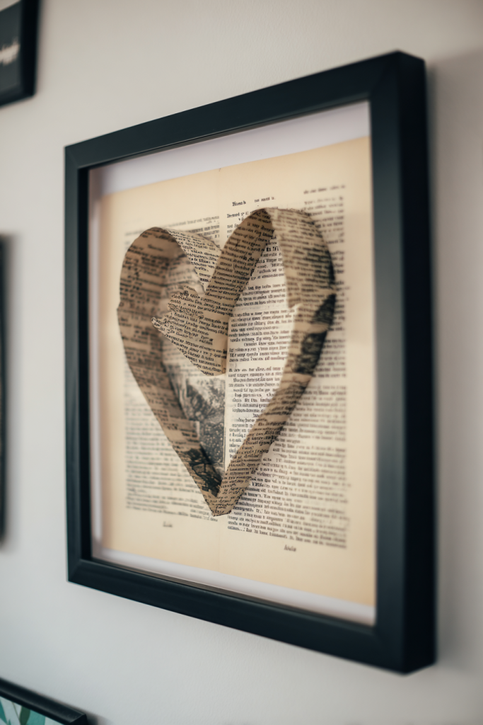 Cut them into shapes—hearts, butterflies, whatever you’re feeling. Arrange them into designs. Glue onto canvas or backing board. Frame it.