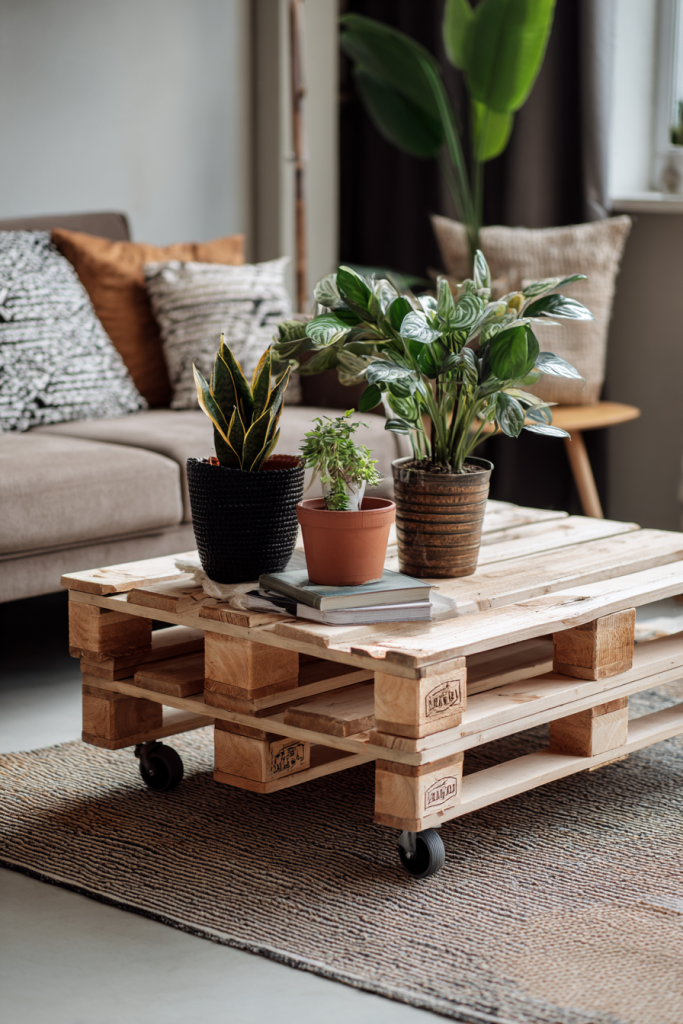 | New coffee table | $200-500 | Pallet coffee table | $0-30 |